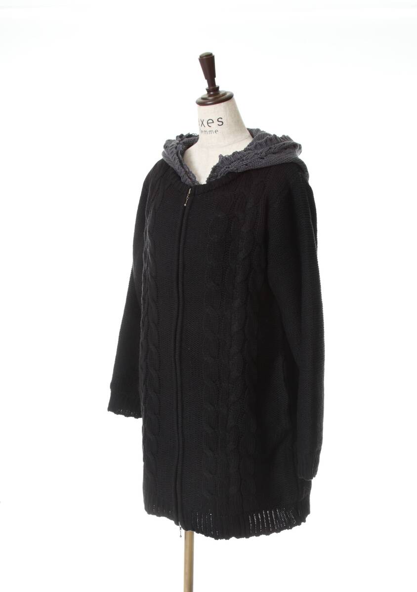 - 300◇裏ボアフード付ニットアウター 黒 ブラック axes femme アクシーズ ファム TS161X42