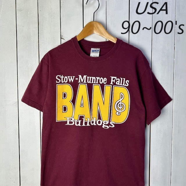 > T●13 USA古着 90s~00s プリントTシャツ GILDAN エンジ S アメリカ古着 ヴィンテージ オールド