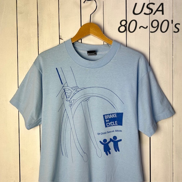 > T●30 USA古着 80s~90s USA製 自転車イラストTシャツ SCREEN STARS L 水色 オールド ヴィンテージ アメリカ古着 シングルステッチ
