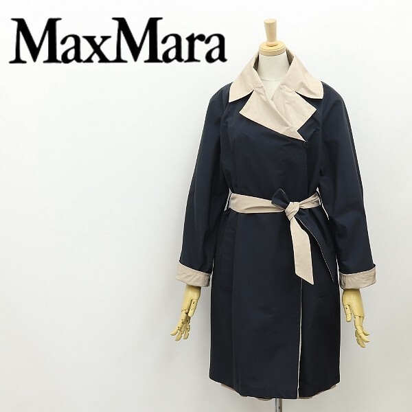 > 白タグ◆Max Mara マックスマーラ リバーシブル リボンベルト付 スプリング コート ダークネイビー×ベージュ 40