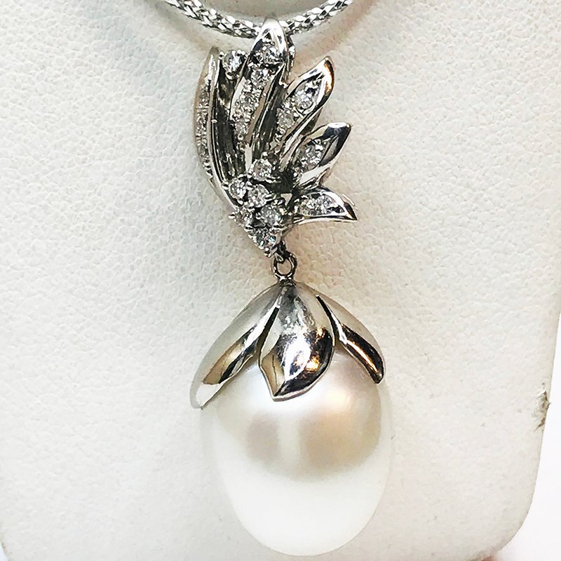 > Pt900 白蝶真珠 パール 18x14mm / ダイヤ 0.23ct デザイン ペンダントトップ プラチナ ソーティング付属 qoj.YES01