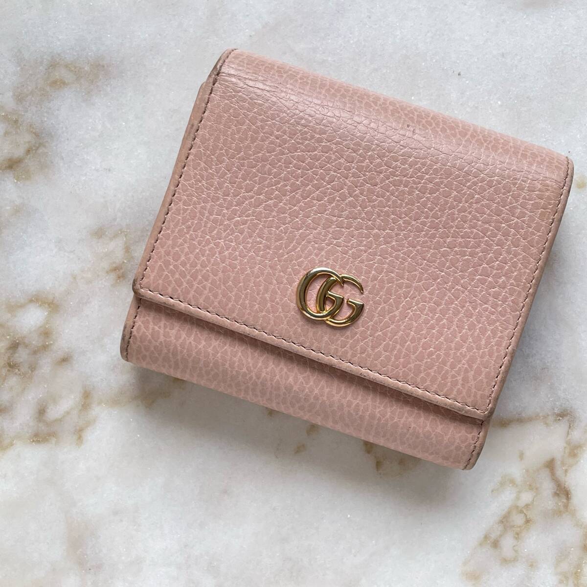 - GUCCI グッチ GGマーモント レザー コンパクト財布 ピンク 本革