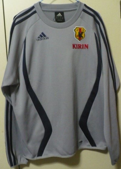 - 完売品 adidas【アディダスジャパン(株)】製2005?9?日本代表スポンサー入りスウェット?長袖練習着?シャツ M グレー×ネイビー