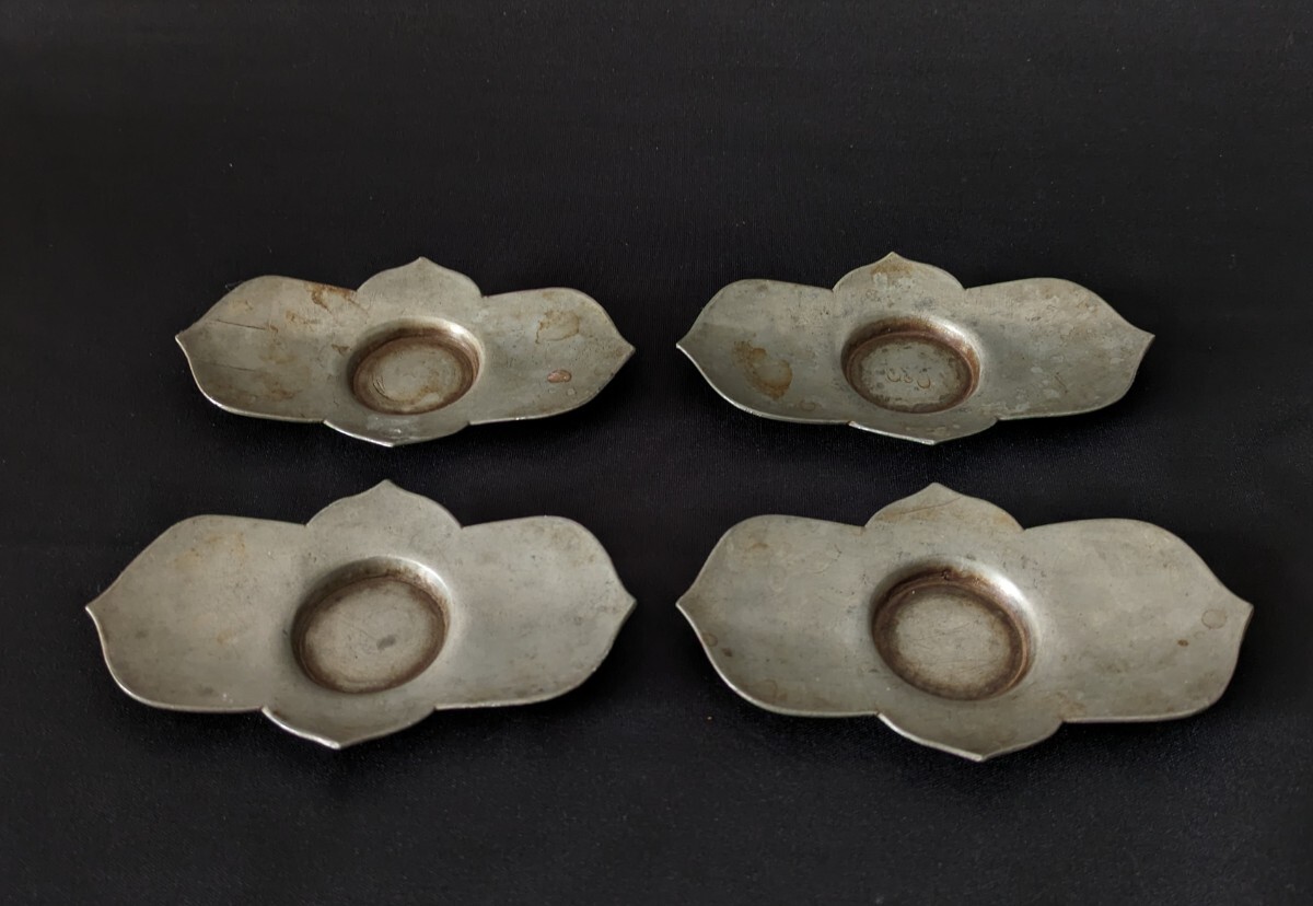 - 4037 中国 朱石梅制 木瓜 型 古錫 時代物 茶托 中国古玩 錫製 茶道具