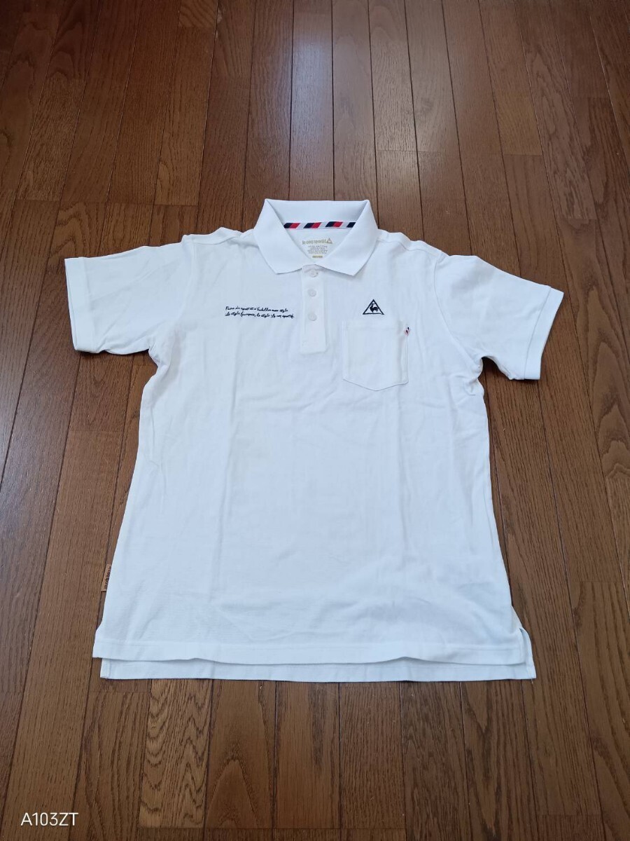 > 1323【中古】le coq sportif ル・コック ゴルフウェア 半袖 ポロシャツ 白 White 胸に刺繍 襟胸ポケット部分にライン メンズ LL