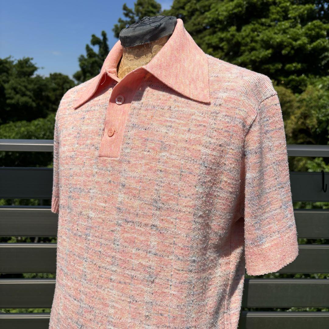 - L USA製 美品 70s Kmart ピンク ミックスニット ポロシャツ ストア アメリカ 古着 男子 オールド ビンテージ サマーニット チェック 総柄