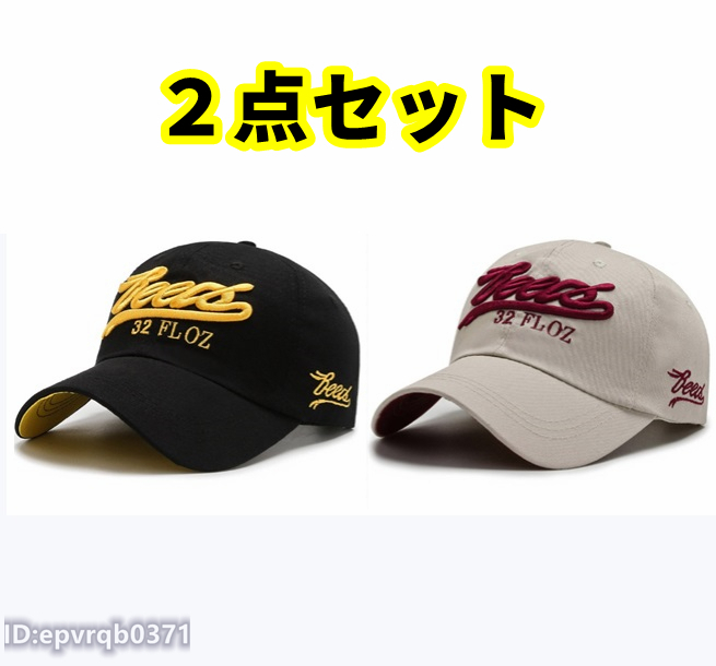 - 2点セット※野球帽 新品 刺繍 キャップ メンズ キャスケット 帽子 フリーサイズ アウトドア 調節可能 ベージュ/黒