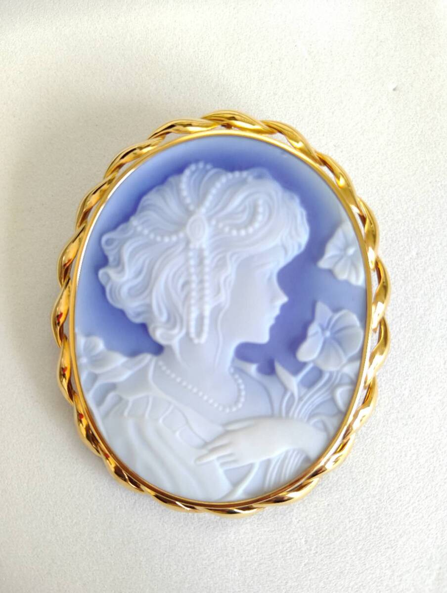 - ブルーメノウカメオ・K18 金具・ブローチ兼ペンダント