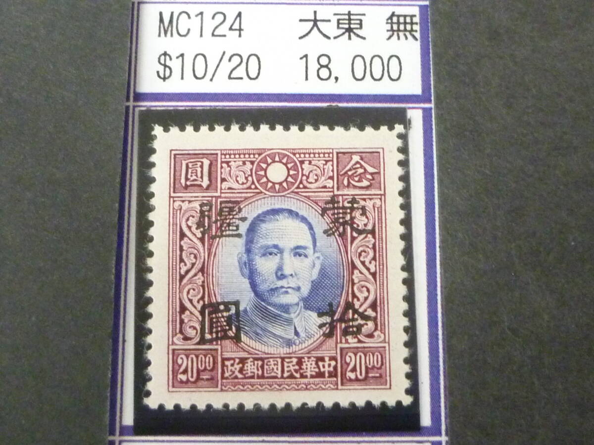 - 24L M №214 中国占領地切手 蒙彊 1941年 折半加刷 国父像大東版(無水) $10/$20 断圓 未使用OH・VF