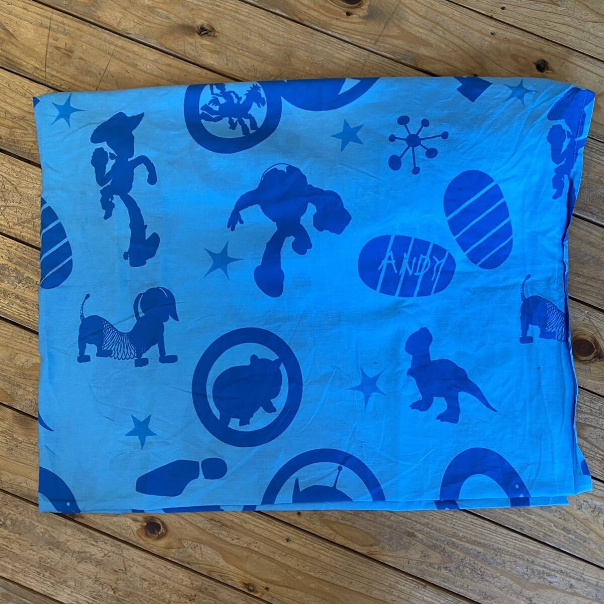 - USAヴィンテージ ベッドシーツ トイストーリー TOY STORY リメイク生地 素材 ボックスシーツ アメリカ仕入 ブルー 影絵 シルエット B2225
