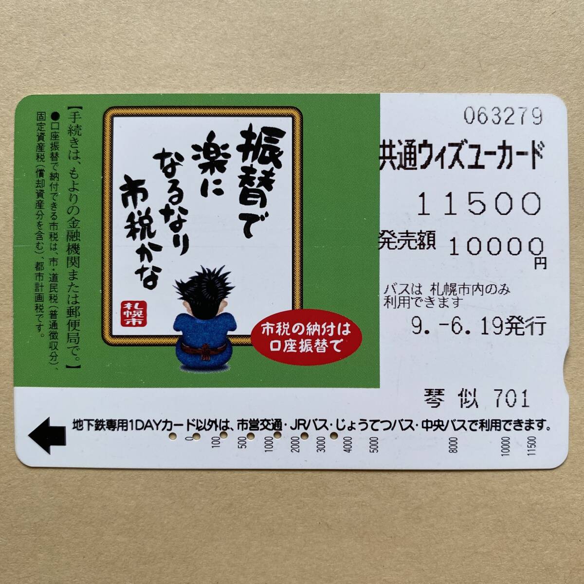 - 【使用済】 ウィズユーカード 札幌市交通局 市税の納付は口座振替で 振替で 楽に なるなり 市税かな