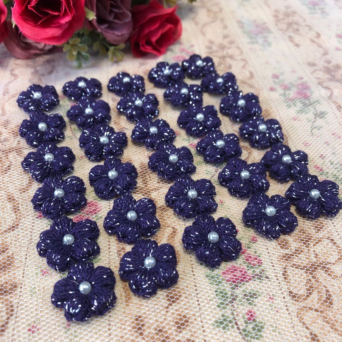 - (No.166)☆ハンドメイド☆ぷっくりお花ミニ【ラメ入りパープル】パールビーズ付き モチーフ パーツ等に
