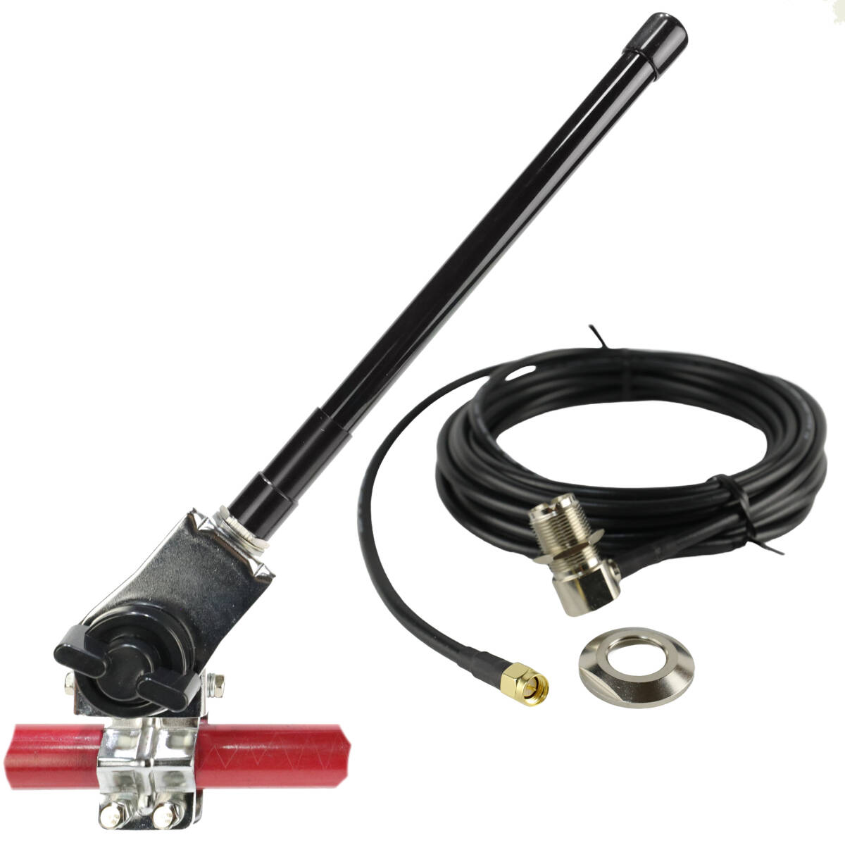 - 144/430MHz帯 22㎝ ノンラジアルアンテナ NL-350(黒)+ルーフアンテナ基台(シルバー)RB46+RG58(3D-2V相当)同軸ケーブル5m MJL-SMA