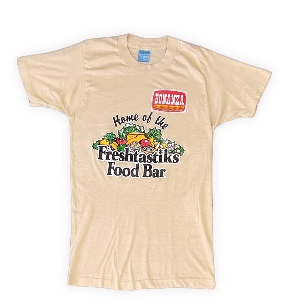 - 70's 80's 米国製 SCREEN STARS スクリーンスターズ ビンテージ Tシャツ レストラン BONANZA トープ M [l-0960]