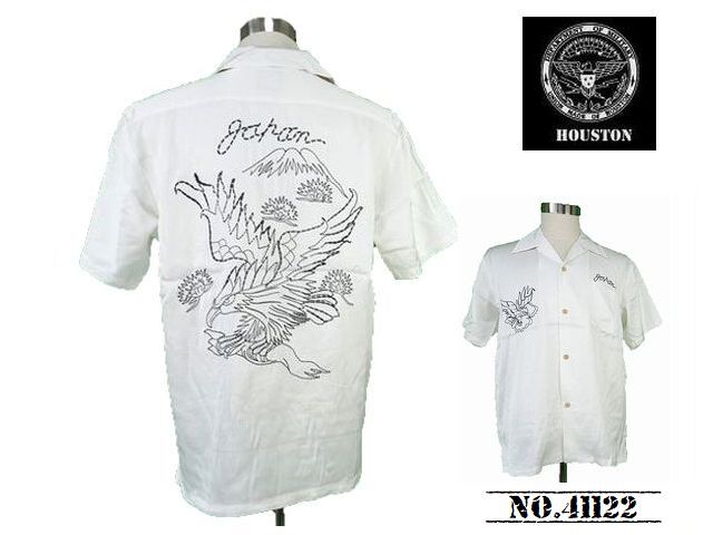 - 【送料無料 39%OFF】HOUSTON ヒューストン 刺繍スーベニアシャツ 「HAWK」柄 NO.41122 OFF WHITE_XLサイズ