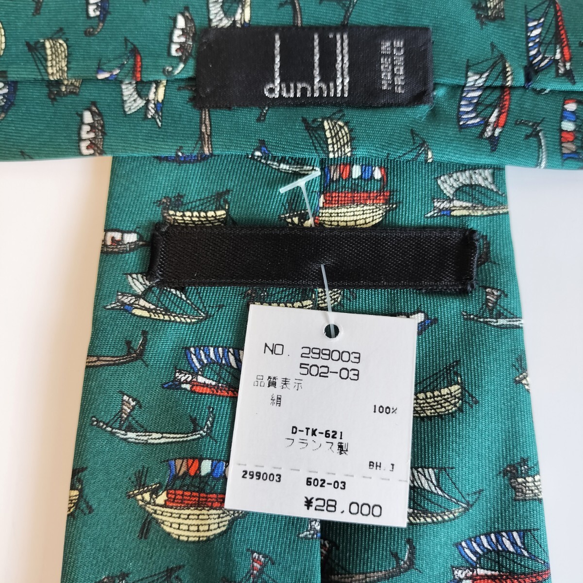- ダンヒル(Dunhill)グリーン船柄Dロゴネクタイ新品 未使用 タグ付き