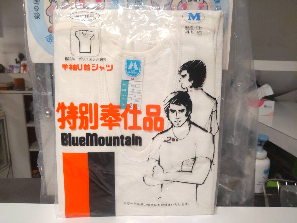 - 未使用★昭和レトロ★80年代★日本製★当時物 ブルーマウンテン 半袖 U首 Tシャツ★肌着 下着 旧車 ヤンキー スポーツ ゲイ 運動 筋肉 不良