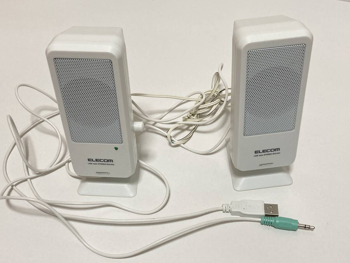 > ELECOM スピーカー ペア MS-UP201WH USB電源 6Y000430 動作確認済 幅6㎝ 奥行7㎝ 高さ16㎝