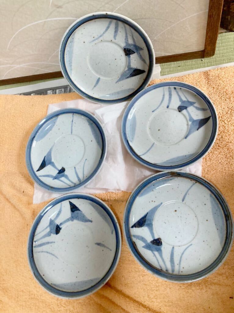 - アンティーク ?骨董品?陶器製?染付?和食器?中皿?5枚セット?汚れありです。