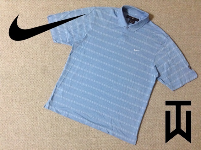 > ★中古★ナイキ ゴルフ タイガー・ウッズ 半袖ポロシャツ 鹿の子 刺繍ロゴ ボーダー NIKE GOLF 00s 10s 古着 ビンテージ ヴィンテージ