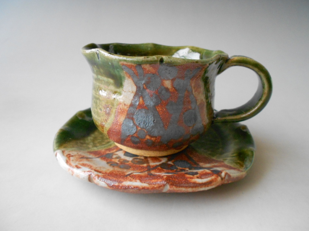 - 美濃焼! ☆絵織部コーヒー碗皿☆ 新品 ギフト V4026-8 紅茶 カップ ミルク ラテ エスプレッソ 茶器 ギフト