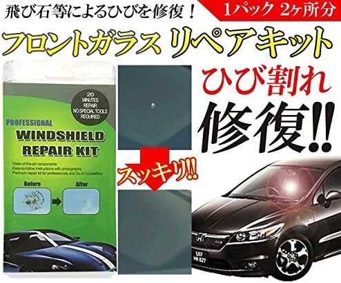 - ★★ ひび割れ 補修 フロントガラス リペア キット 2ヶ所分(飛び石 傷 修理 穴埋め 修復)
