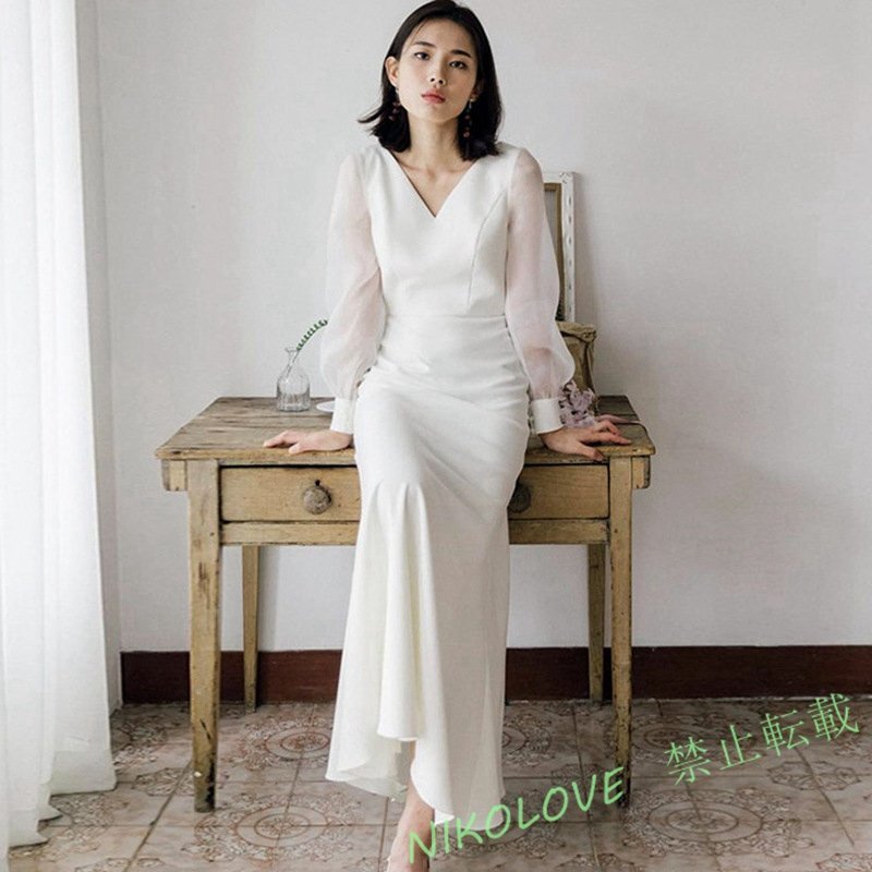 - 新品結婚式 披露宴 ホワイト ウエディングドレス ウエディングドレス ウェディングドレス レディース シンプル ドレスエレガント LC661