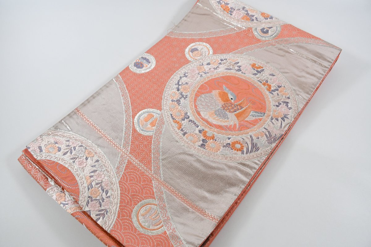 - 袋帯 未仕立て 鴛鴦遊映 更紗 鳥 帯丈420cm ★着物屋 ne-10686 桜庭呉服店