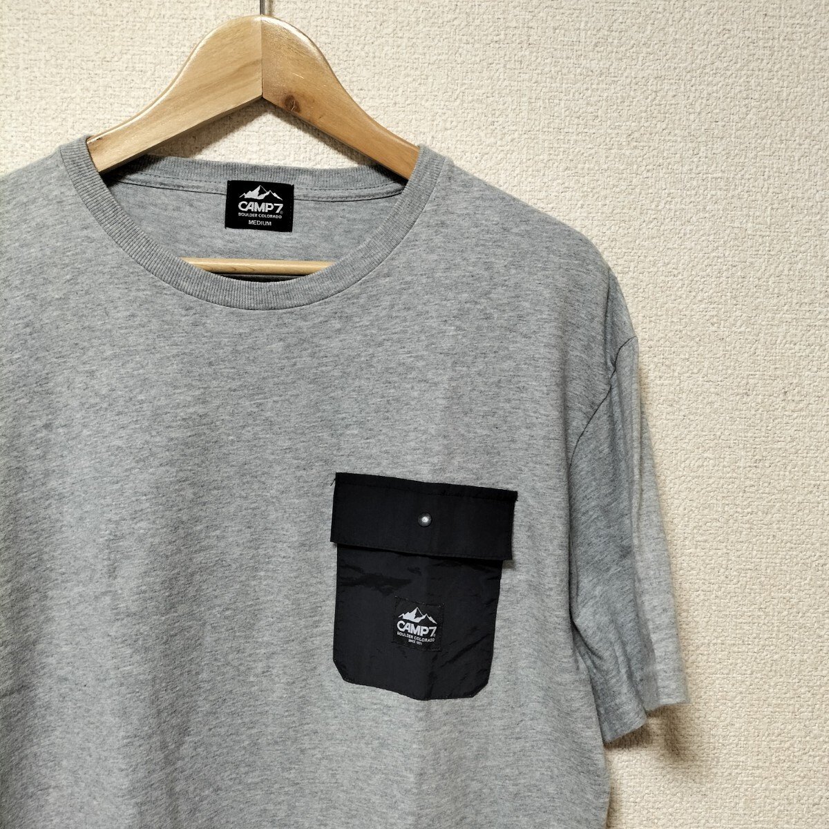 - 美品☆CAMP7 キャンプセブン 半袖 Tシャツ 胸ポケット ピスネームタグ メンズ サイズM 杢グレー 霜降り カットソーほぼ未使用 古着 USED