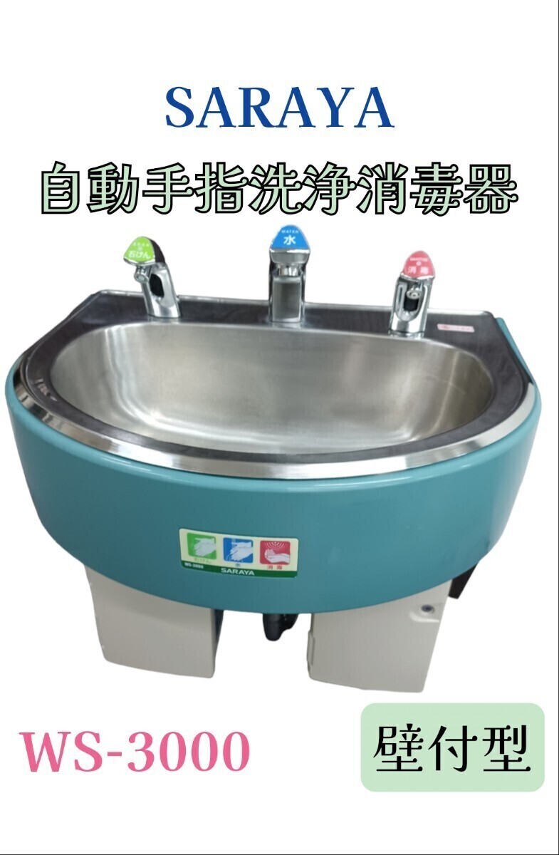 - 岩41③【引取可/愛知】SARAYA 自動手指洗浄消毒器 壁付型 ノータッチ ステンレスシンク センサー 100V シンク ハンドシンク 飲食店240619
