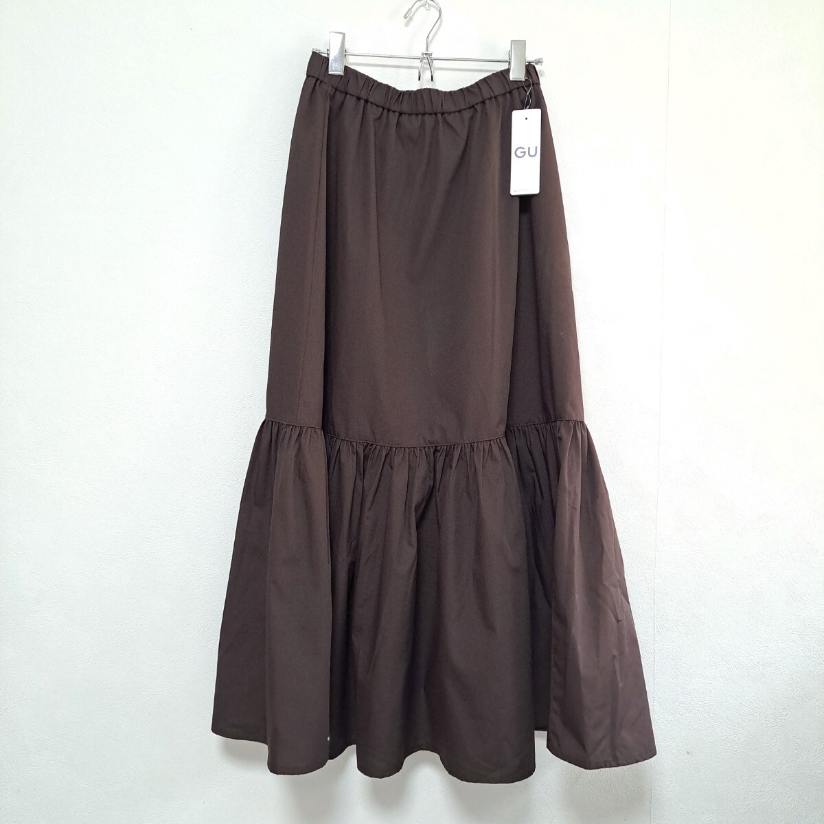 - 未使用タグ付き GU ジーユー ティアードロングスカート ダークブラウン ウエストゴム サイズM レディースY56