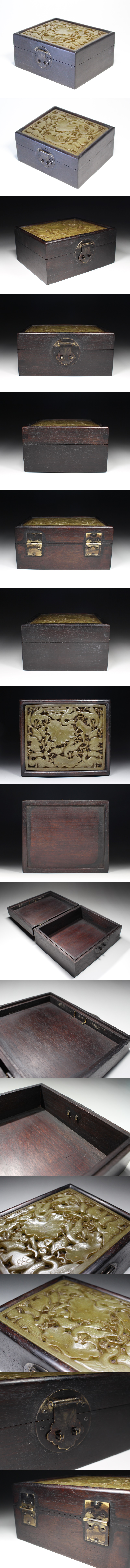 - ■中国古玩■玉石・花鳥紋彫・文房盒・宝石盒・小物入・木箱・超細密細工・唐物・検 紫檀 黒檀・f2112h
