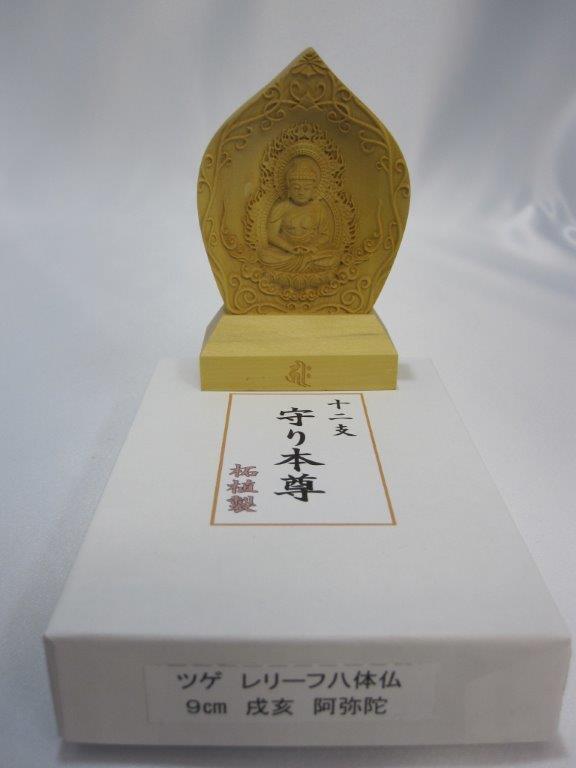 - 「阿弥陀如来 戌年 亥年 守り本尊」柘植製/高さ約90mm/十二支/レリーフ八体仏/川本仏壇店/川本仏