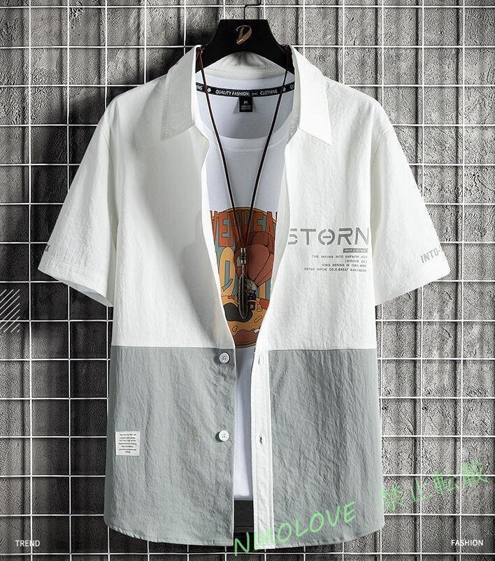 - 新品半袖シャツ メンズ 夏 コットンシャツ 開襟シャツカジュアルシャツ 切り替え 涼しい 通気性 着心地いいM~4XL LC920