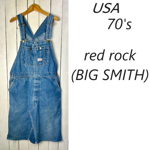 > USA古着 70s redrock BIG SNITH オーバオールリメイク デニムジャンパースカート ヴィンテージ サロペットスカート カットオフ ★229