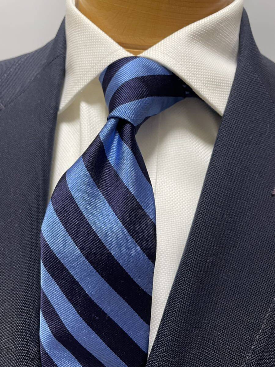 - 【美品】Pierrepont Hicksピアポントヒックス USA製レジメンタル柄 ネイビー×スカイブルー大剣約7.5cm