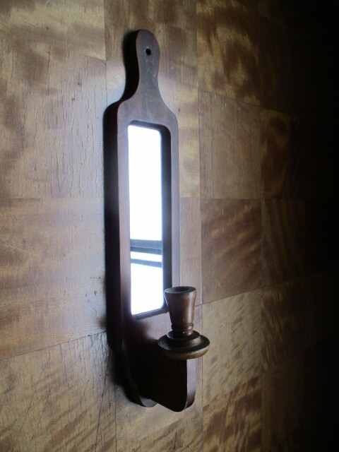 - ミラー付き木製キャンドルスタンド壁掛け鏡インテリア店舗什器ディスプレイレトロ