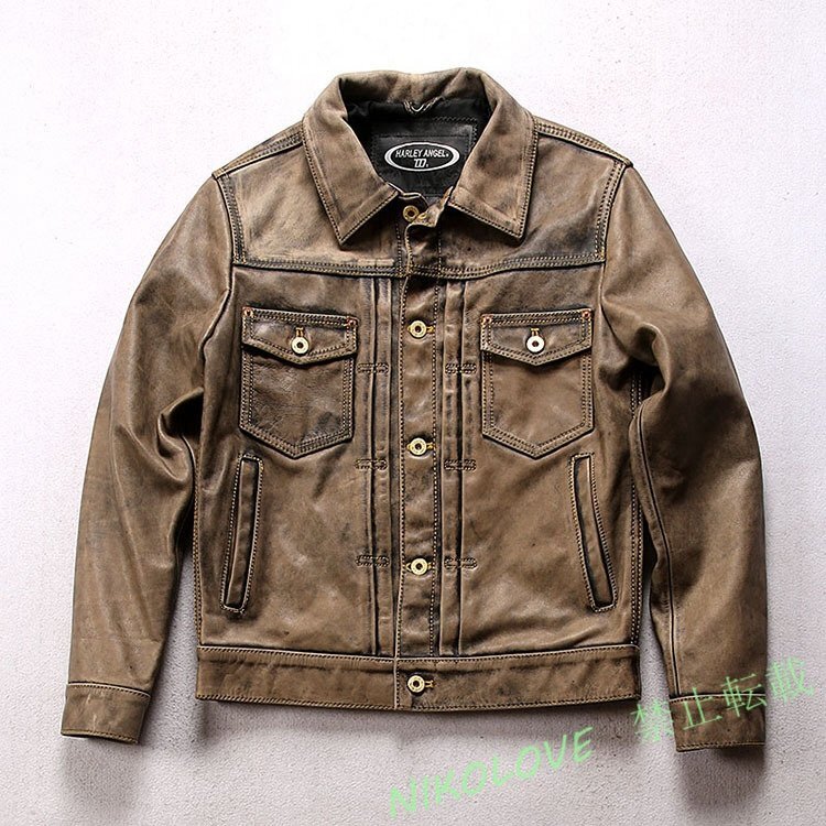 - 新品 秋冬ライダース 507アメカジ 牛革 レザージャケット カウハイド 革ジャン メンズ本革 ユーズド加工 サイドライン LH429