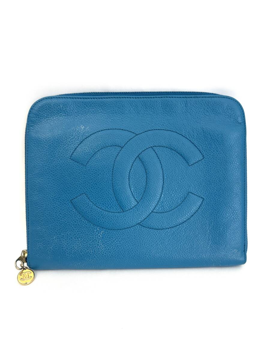 - 6F3009 【本物保証】シャネル クラッチ バッグ マルチ ケース ポーチ キャビアスキン レザー ブルー ココマーク CHANEL