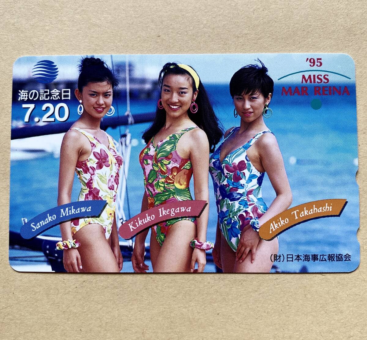 - 【未使用】 テレカ 50度 みかわさなこ いけがわきくこ たかはしあきこ 女性水着モデル ’95ミスマル・レイナ 日本海事広報協会