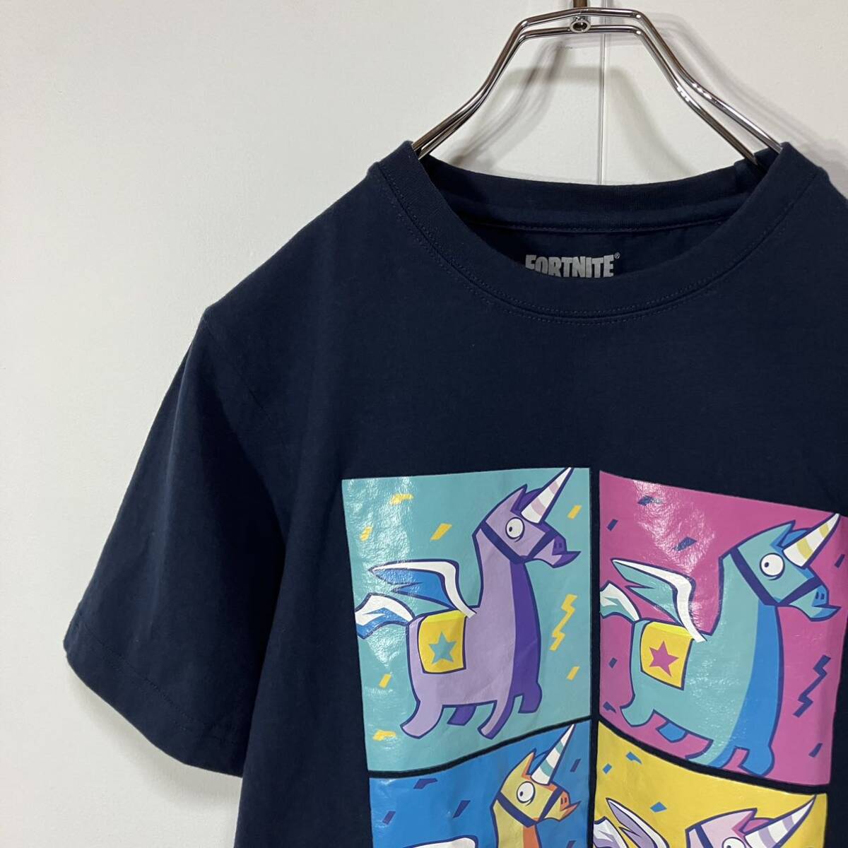 > RORTNTE フォートナイト ペガサス キャラクター プリント クルーネック 半袖 Tシャツ 古着 ネイビー S