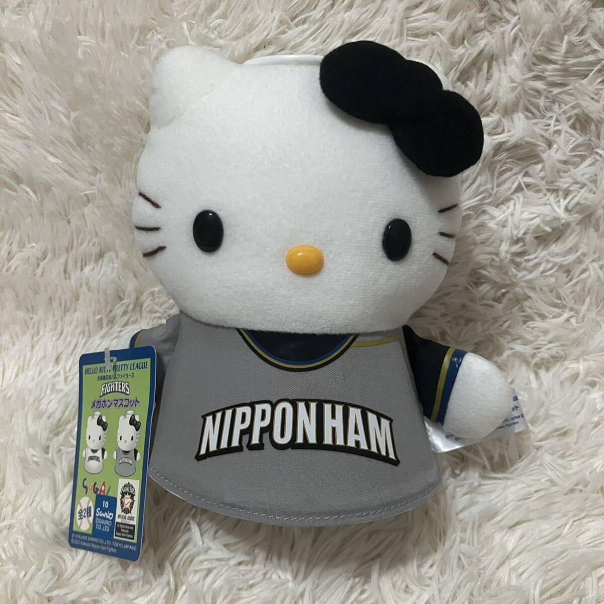> ハローキティ 北海道 日本ハムファイターズ 限定 メガホン マスコット ビジター ユニフォーム ぬいぐるみ 2005年 サンリオ 平成 レトロ