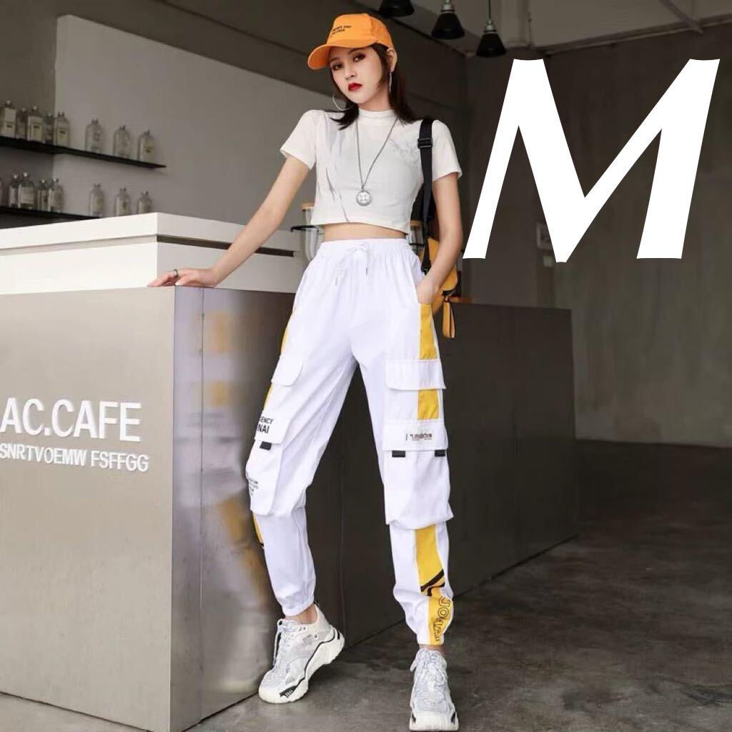 - カーゴパンツ ジョガーパンツ ラインパンツ ボトムス ユニセックス 白黄 M