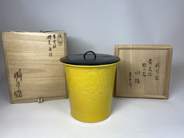 > 【雪華】 淡海ぜぜ 陽炎園 黄交趾 棒先 水指 尋牛斎 書付 膳所焼