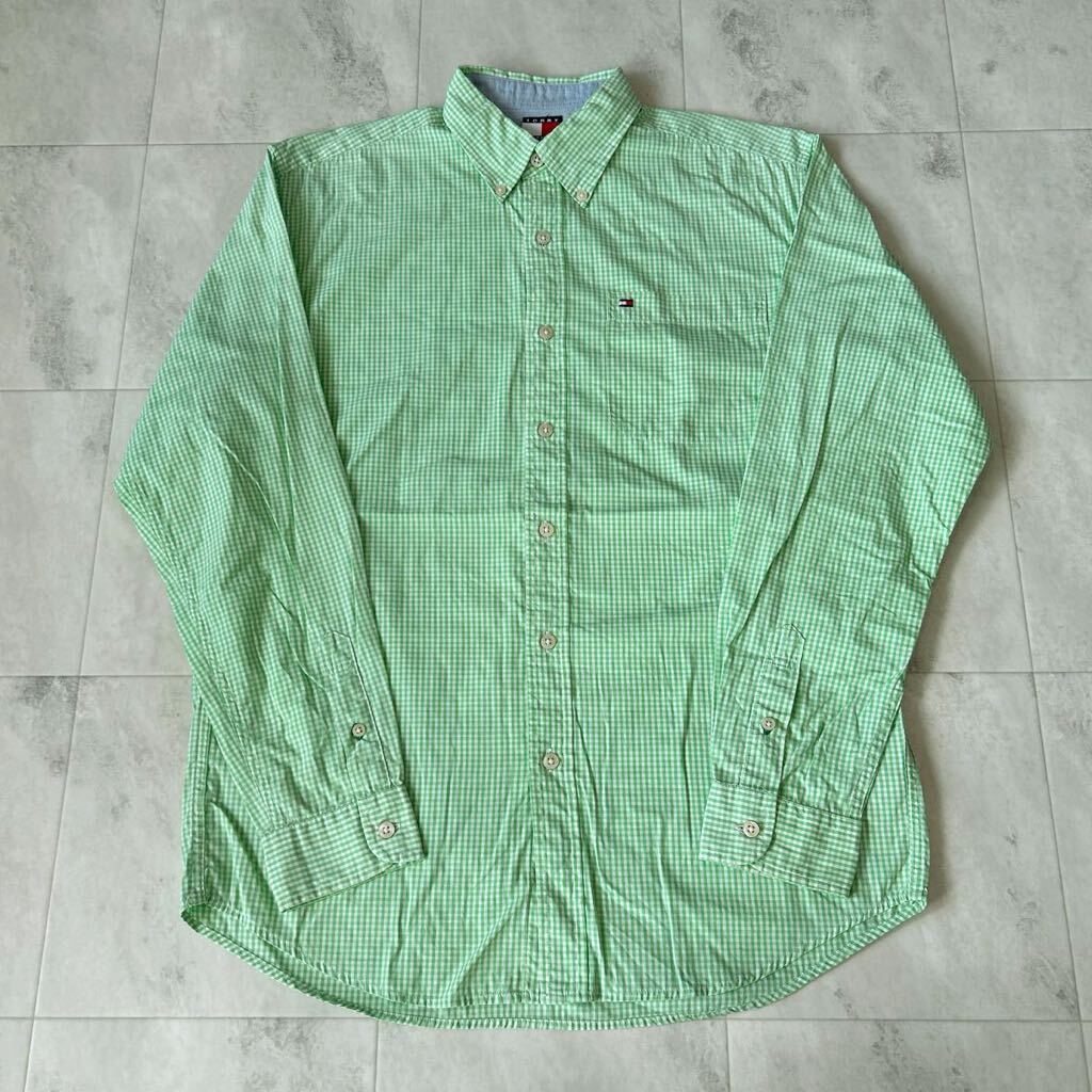 - 90s TOMMY HILFIGER フラッグタグ 刺繍 ギンガムチェック ビンテージ ボタンダウン 長袖シャツ