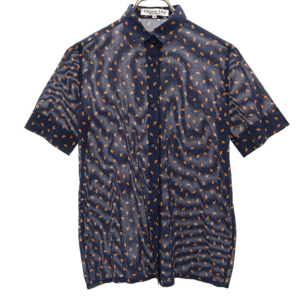 - クリスチャンディオール 90s オールド 総柄 半袖 コットンシャツ M ネイビー系 Christian Dior レディース