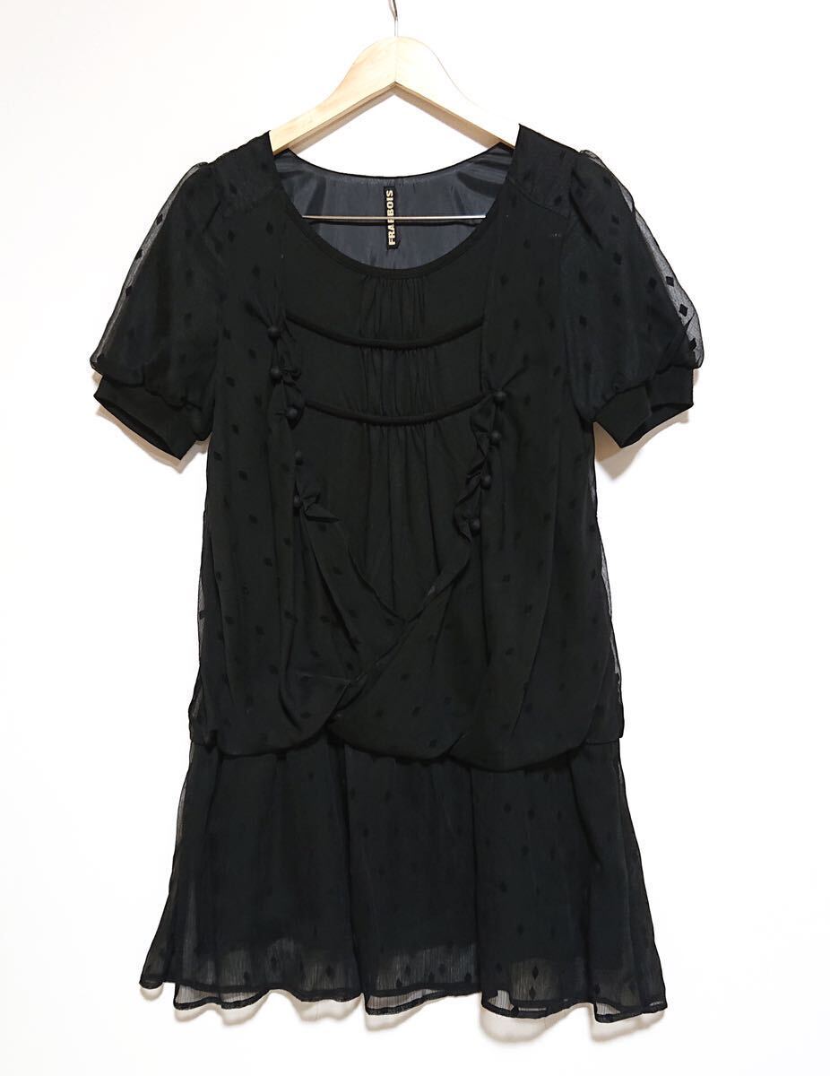 - H9247gg FRAPBOIS (フラボア) サイズ1(M位) 半袖ワンピース ブラック ドット柄 レディース ウェストゴム デザインワンピース かわいい