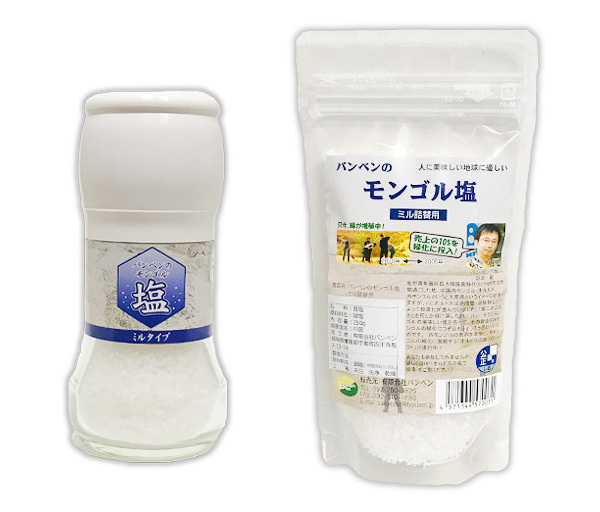 - モンゴル塩(ミルタイプ)(60g)&ミル詰替用~(250g)★ほのかな甘味とともに、雑味のないすっきりした味♪素材の味を引き立てます(*^^*)