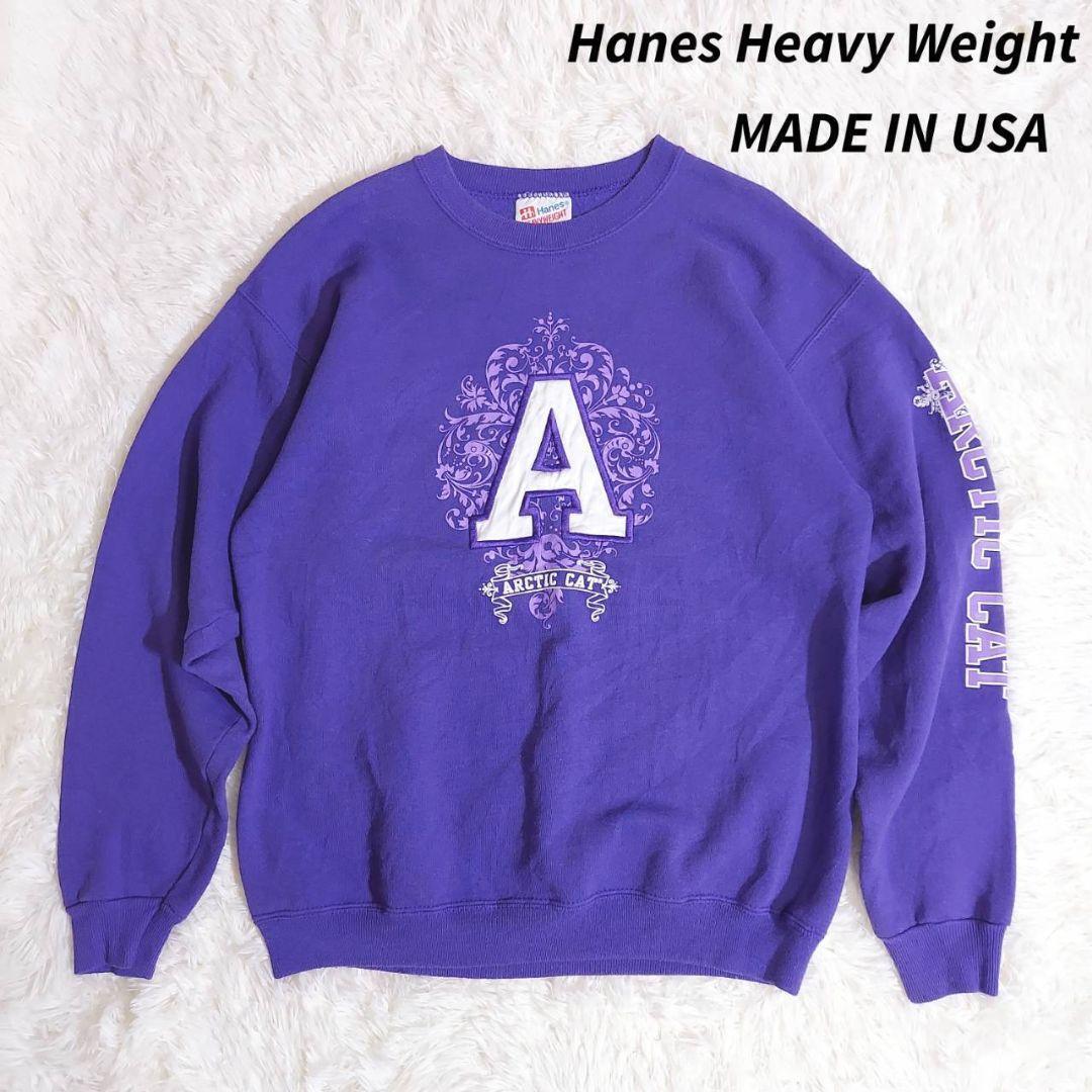 - USA製 Hanes Arctic Cat 裏起毛スウェット紫パープル USA製 ドロップショルダーアメリカ古着 66711