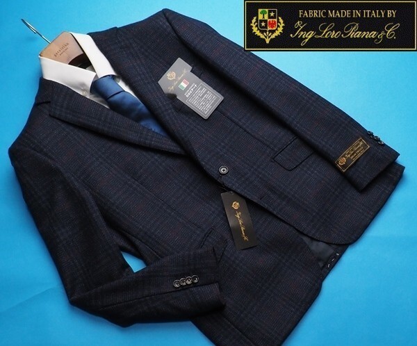 - 新品9.6万円 大手百貨店扱い 秋冬『Loro Piana ロロピアーナ DREAM TWEED 伊製生地』ウール100% ツイード ジャケットAB8紺(B) 3050470